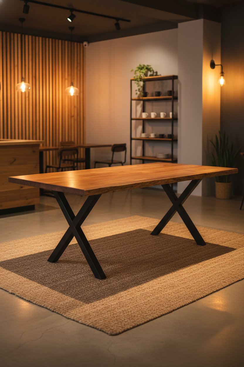 İşletmenizin Yatırımını Güvence Altına Alın: Gastronomi X Serisi. Yüksek trafik hacmine sahip otel, kafe ve restoran ortamları için tasarlanmış olan bu Endüstriyel Masif Servis Masası, estetikten ödün vermeden operasyonel dayanıklılık sunar. Doğal masif ahşap tablası, premium müşteri deneyimini garantilerken, özel yüzey işlemi sayesinde kolay temizlenebilir ve hijyen standartlarını korur. Mimari projelere ve toptan satınalma ihtiyaçlarına yönelik olarak güçlendirilmiş, mat siyah X metal ayak tasarımı ise stabiliteyi ve uzun ömürlülüğü maksimize eder. Yenileme döngülerinizi uzatarak yatırım getirisi (ROI) sağlayan bu masa, sadece bir mobilya değil, markanızın kalitesini yansıtan kalıcı bir varlıktır. Profesyonel projeleriniz için ideal, güvenilir ve kurumsal bir çözümdür.