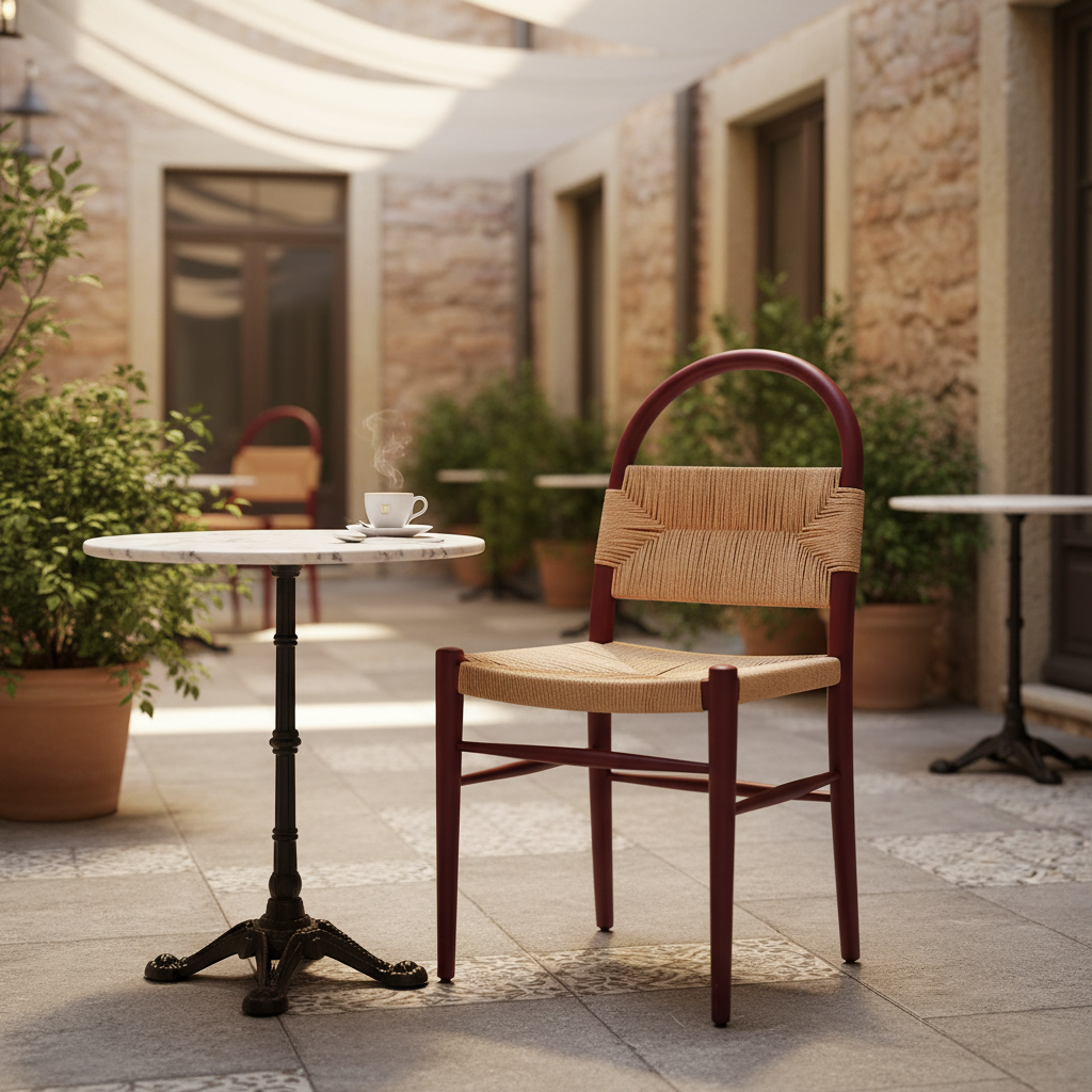 Klasik İskandinav tasarım mirası ile modern estetiği birleştiren bu sandalye, tüm mekanlar için zamansız bir oturma çözümü sunar. Koyu kırmızı (bordo) tonlarda cilalanmış sağlam ahşap iskelet üzerine inşa edilmiştir. Sırt ve oturma alanındaki doğal jüt veya hasır ipin el örgüsü tekniği, ürüne otantik bir doku ve nefes alabilirlik katar. Kavisli sırt dayama bölümü ergonomik destek sağlarken, dayanıklı yapısı sayesinde sadece yemek masaları için değil, aynı zamanda çalışma odaları veya kafe/restoranlar için de ideal bir seçimdir. Kaliteyi ve tasarımı bir arada arayanlar için zarif bir parça.