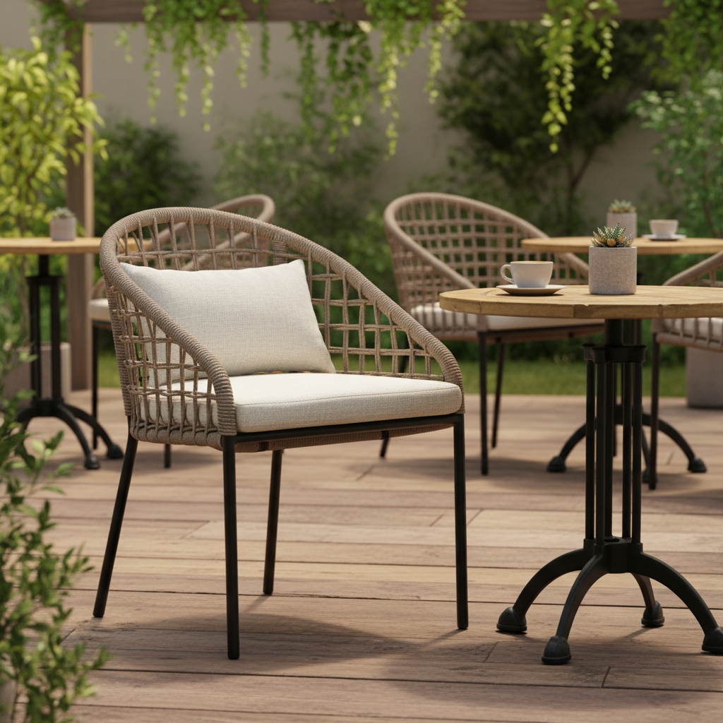 Neva Örme Kollu Koltuk ile dış mekanlarınızda zarafet ve konforu bir araya getirin. Modern örme yapısı ve rahat minderleriyle gün boyu keyifli anlar sunan bu koltuk, her türlü teras, balkon veya bahçe dekorasyonuna mükemmel uyum sağlar. Dayanıklı metal ayakları ve şık tasarımıyla mekanınıza sofistike bir dokunuş katarken, uzun ömürlü kullanım vadediyor.