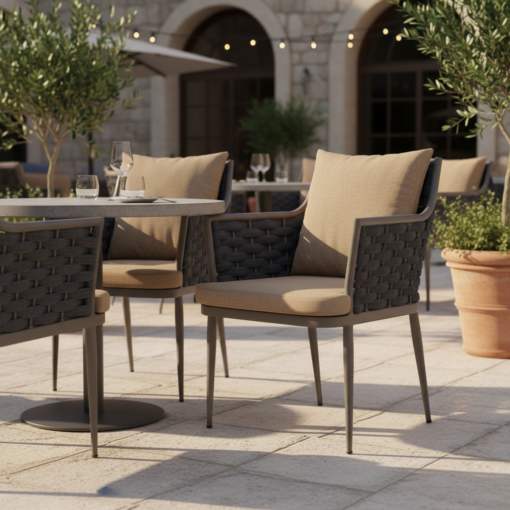 Mora Kollu Örme Sandalye ile dış mekanlarınıza zarafet ve dayanıklılık katın. Modern tasarımı ve hava koşullarına dayanıklı örme detaylarıyla hem göz alıcı hem de konforlu bir oturma deneyimi sunar. Uzun süreli misafir ağırlama veya keyifli anlarınız için idealdir.