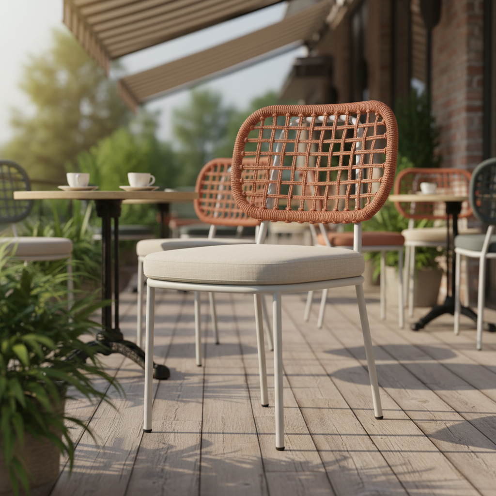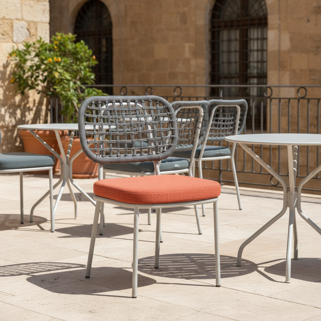Eos Örme Sandalye, dış mekanlarınıza modern bir dokunuş katarken, iç mekanlarda da göz alıcı bir stil yaratır. Özgün örgü sırtlığı ve konforlu minderli oturumuyla, uzun sohbetleriniz ve keyifli anlarınız için ideal bir seçimdir. Dayanıklı metal iskeleti sayesinde hem estetik hem de fonksiyonel bir kullanım sunar.