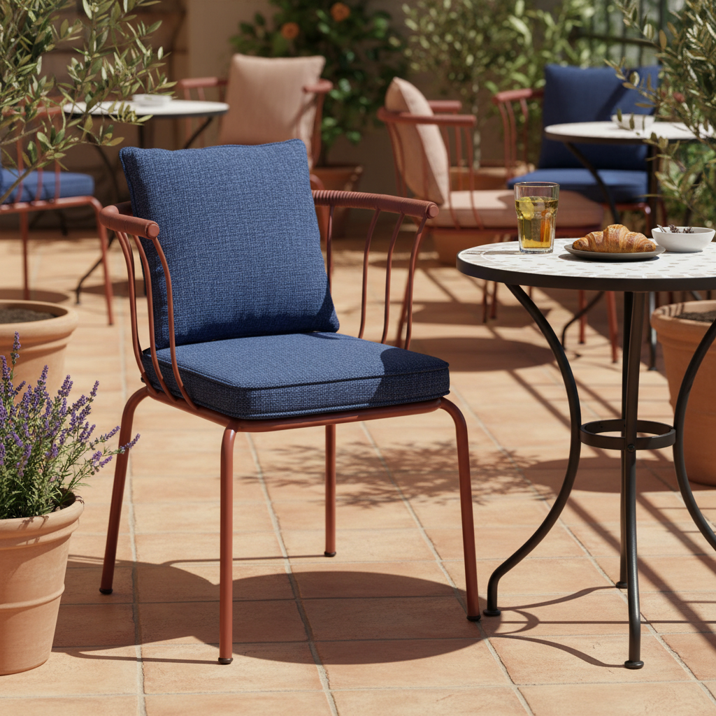 Terra Comfort: Minderli Kiremit Rengi Metal Bahçe/Balkon Sandalyesi
