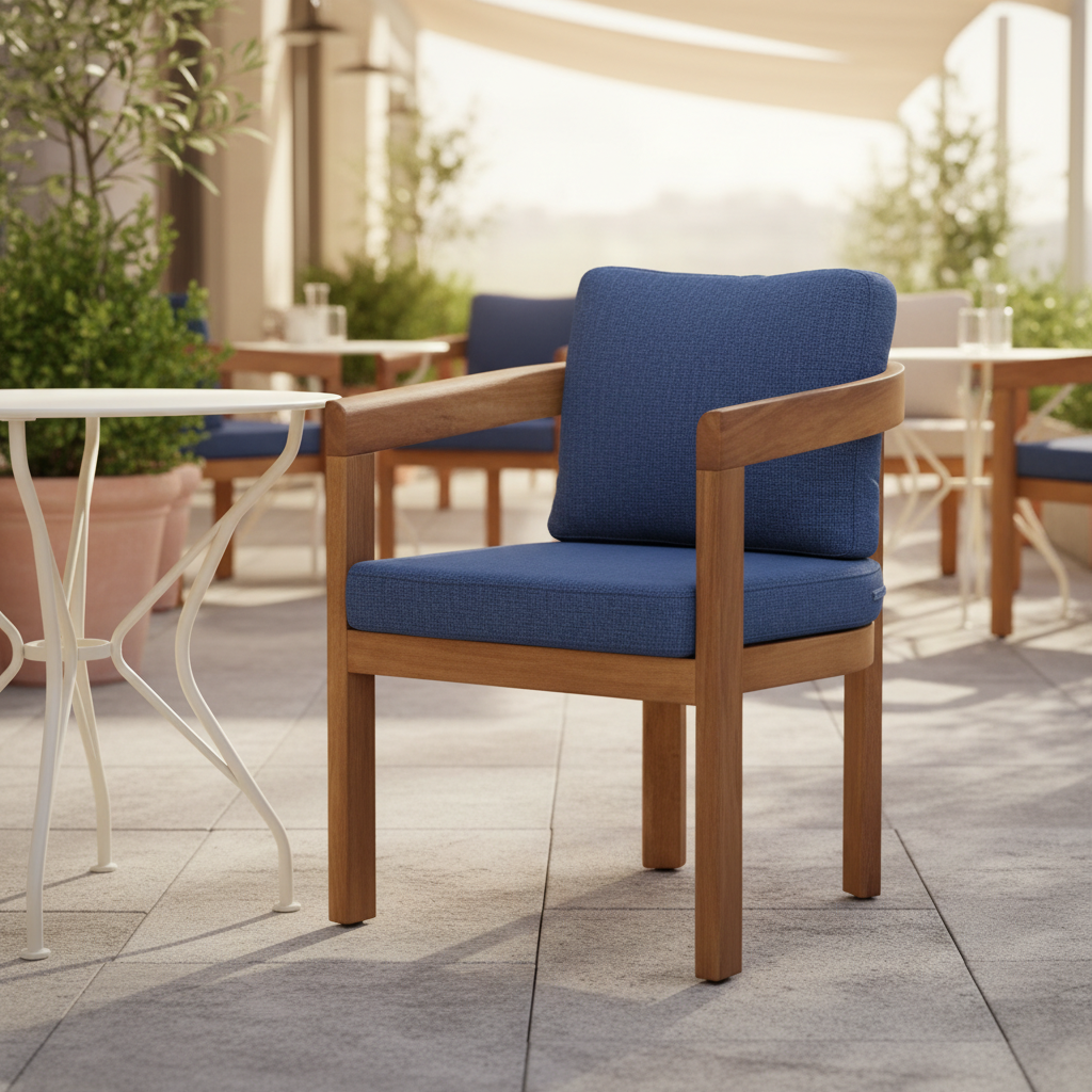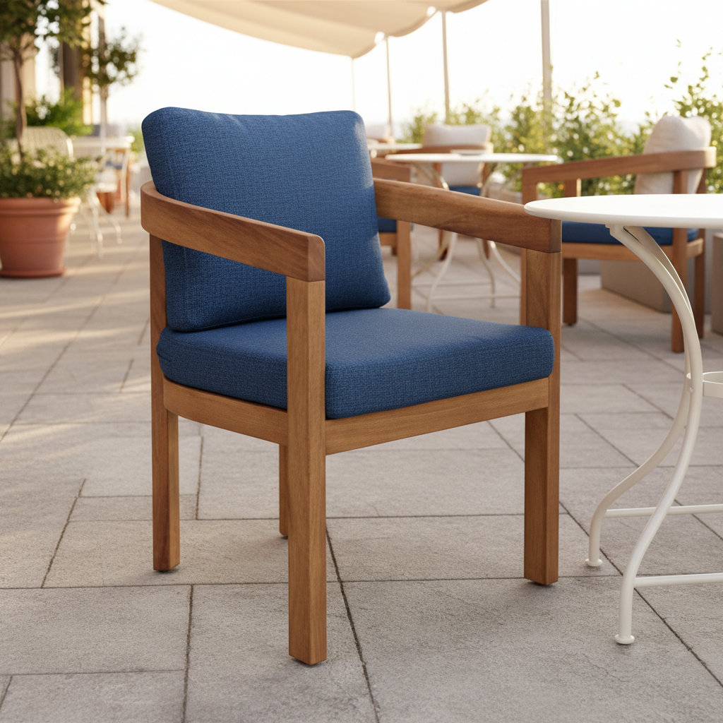 Dış mekanlarınıza modern ve zamansız bir dokunuş katın. Sağlam ahşap iskeleti ve konforlu, yumuşak kumaş minderleriyle bu sandalye, hem göz alıcı bir estetik sunar hem de uzun süreli rahatlık sağlar. Terasınızdan kafenize kadar her alanda şıklığı ve fonksiyonelliği bir araya getiren Soleil, keyifli anlarınıza eşlik etmek için tasarlandı.