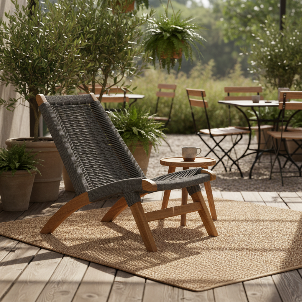 Pura Kollu Ahşap İp Örgü Koltuk ile dış mekan keyfinizi yeniden tanımlayın. Sağlam ahşap iskeleti ve ustalıkla örülmüş ipleriyle hem dayanıklı hem de estetik bir duruş sunar. Balkonunuzda, terasınızda veya bahçenizde konforlu anlar geçirmek için ideal bir seçimdir.