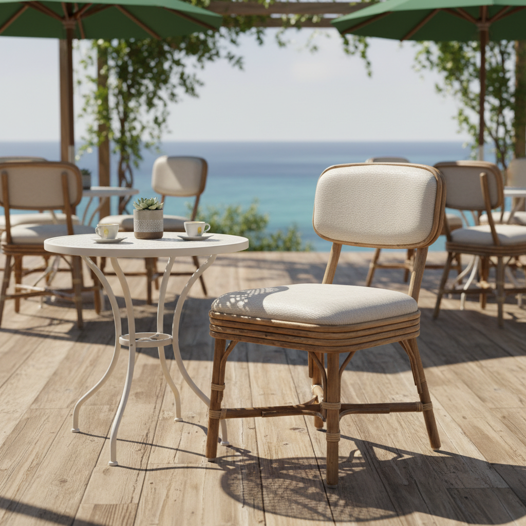 Deniz esintilerini yaşam alanlarınıza taşıyan Serena Sandalye, doğal rattan örgüsü ve konforlu kumaş minderiyle huzurlu bir atmosfer yaratır. Hem iç hem de dış mekanlarınıza Akdeniz ruhunu katarken, dayanıklı yapısıyla uzun yıllar keyifli anlarınıza eşlik eder. Zarif tasarımıyla misafirlerinizi büyüler, her oturuşta eşsiz bir rahatlık sunar.
