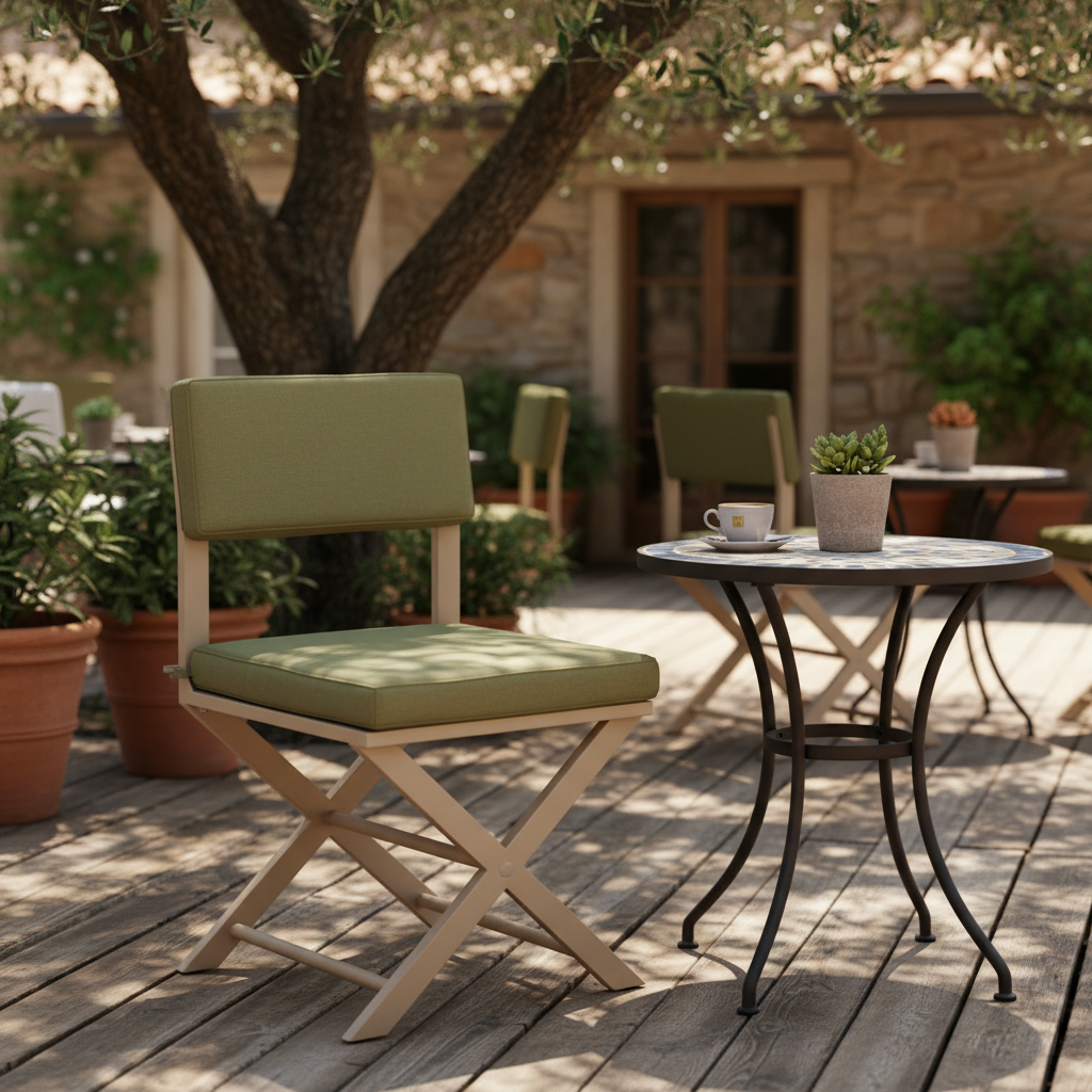 Güneşli teraslar ve sıcak sohbetler için tasarlanmış Solana Katlanır Minderli Sandalye, hem şıklığı hem de pratikliği bir arada sunuyor. Dayanıklı yapısı ve konforlu minderleriyle dış mekanlarınıza modern bir dokunuş katarken, katlanabilir özelliği sayesinde kolayca depolanabilir ve taşınabilir. Konuklarınızı ağırlarken veya huzurlu bir kahve molası verirken ideal bir seçenek.