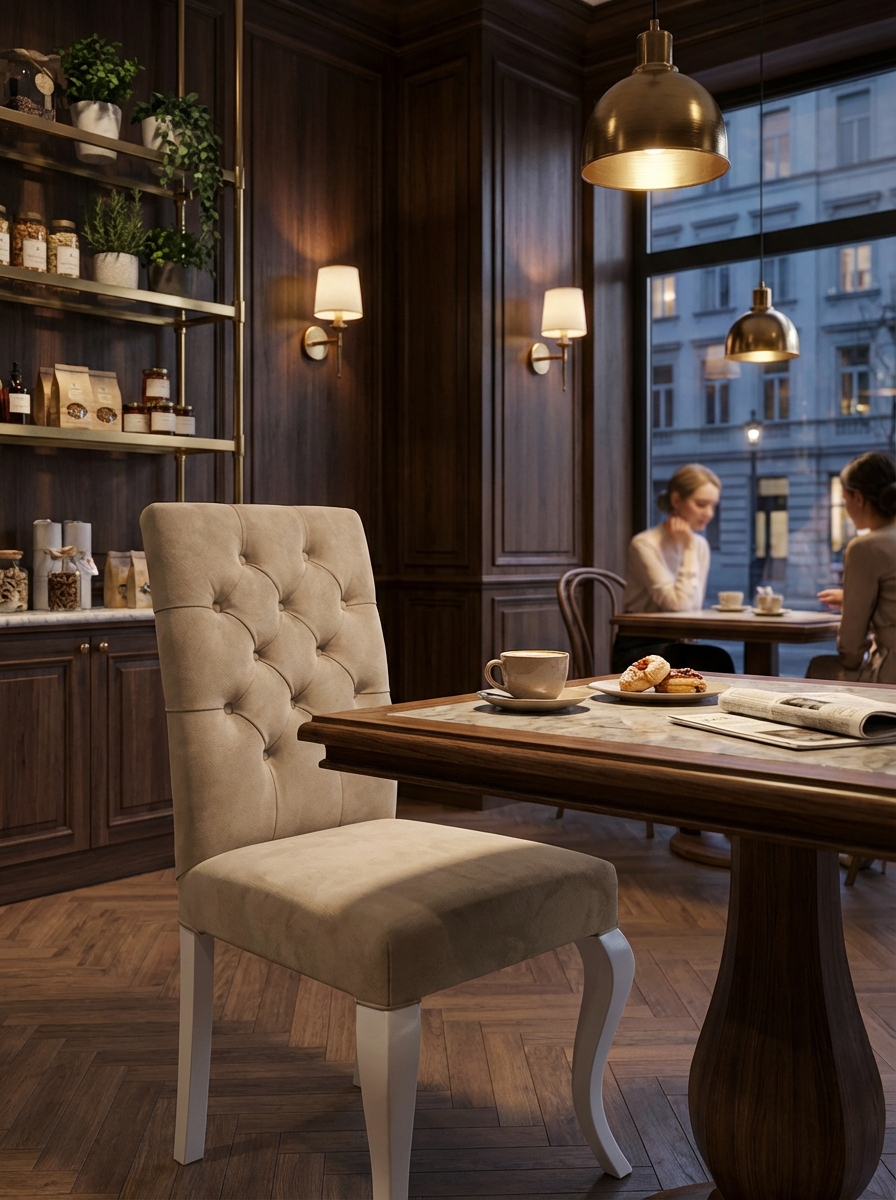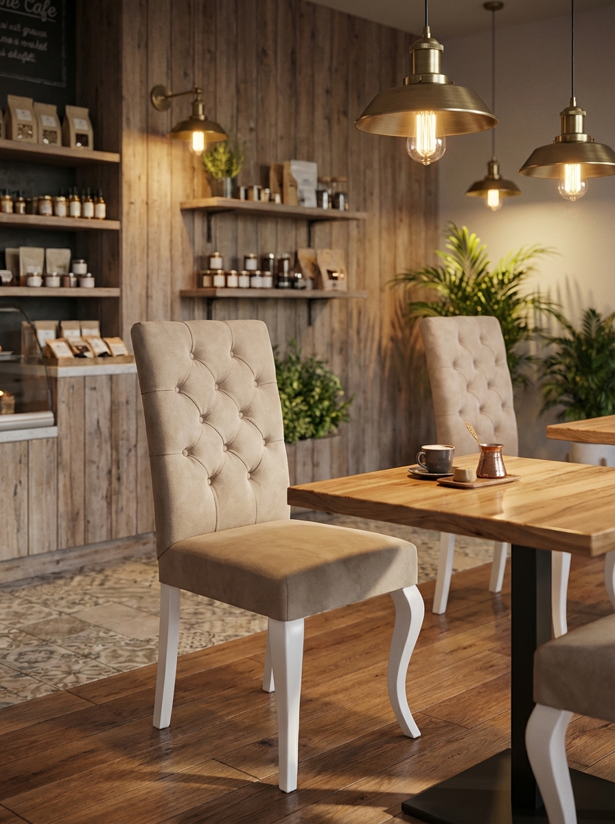 Zarafetin ve konforun buluştuğu Regina Kapitoneli Sandalye ile yaşam alanlarınıza asil bir dokunuş katın. Klasik çizgileri, şık kapitone detayları ve zarif ahşap ayaklarıyla her anınıza sofistike bir atmosfer getirir. Yemek masası etrafında unutulmaz davetler yaratmak veya çalışma alanınızda lüks bir dokunuş hissetmek için idealdir.