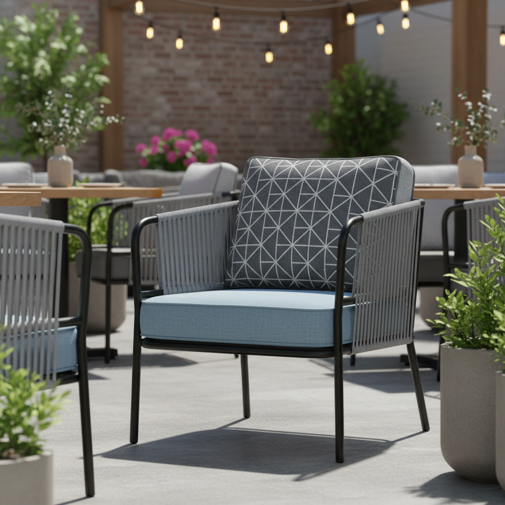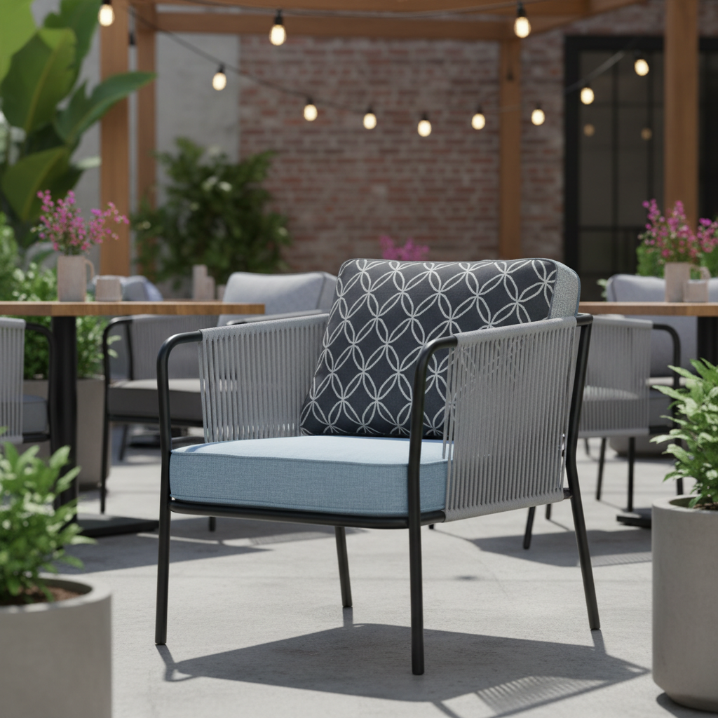 Pera Kollu İp Örgülü Koltuk ile dış mekanlarınızda stil ve konforu bir araya getirin. Modern metal çerçevesi ve zarif ip örgü detaylarıyla dikkat çeken bu koltuk, kalın ve rahat minderleriyle eşsiz bir dinlenme deneyimi sunar. Akşam yemeklerinden keyifli sohbetlere kadar her anınıza eşlik edecek, bahçenize veya terasınıza sofistike bir dokunuş katacak mükemmel bir seçim.