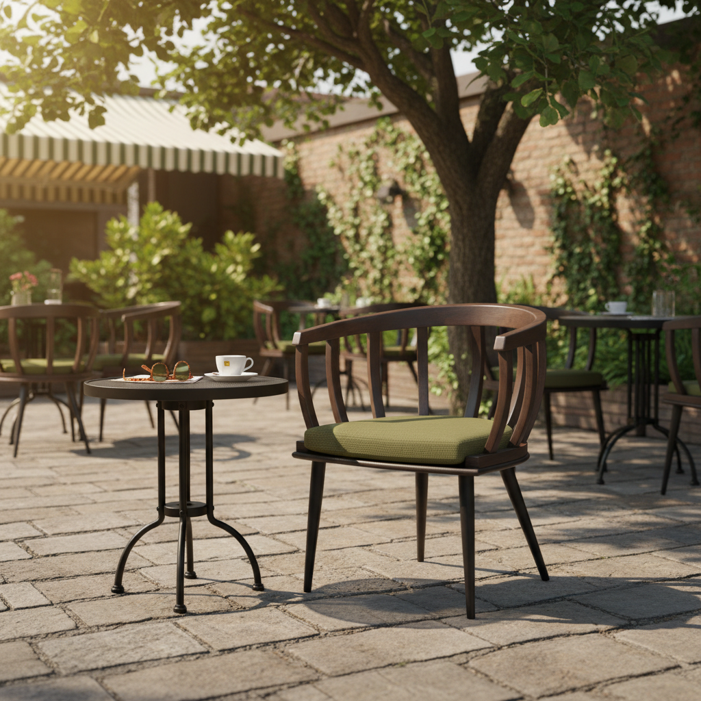Kora Ahşap Kollu Kumaş Minderli Sandalye ile açık alanlarınıza zarafet ve konfor katın. Ergonomik kolları ve yumuşak kumaş minderi sayesinde uzun sohbetlerin keyfini çıkarırken, dayanıklı ahşap iskeleti ile mekanınıza doğal bir sıcaklık getirir. Hem iç hem dış mekanlarda şıklığı ve rahatlığı bir arada arayanlar için ideal bir seçim.