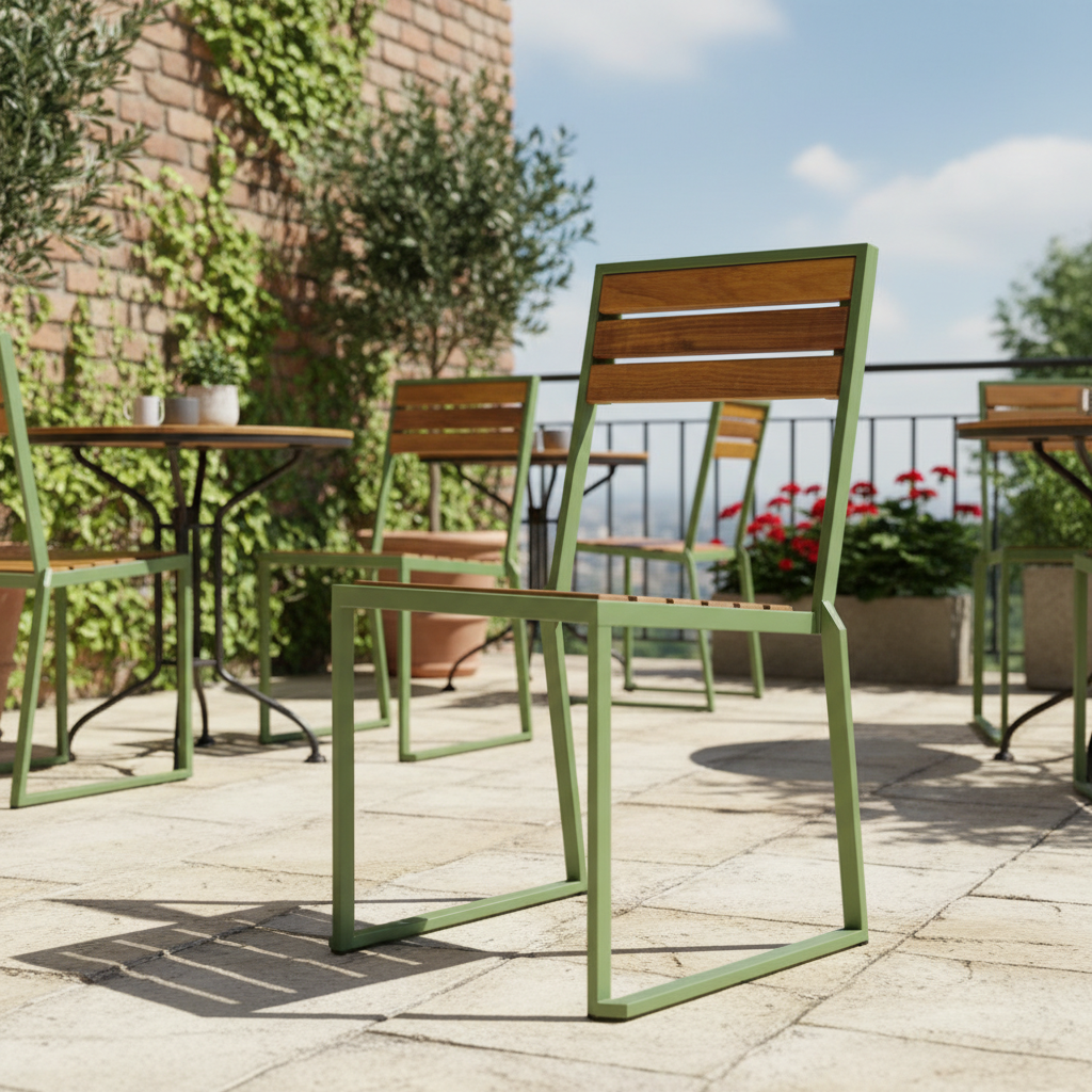 Alya Metal Ahşap Sandalye ile açık alanlarınıza modern bir dokunuş katın. Sağlam metal iskeleti ve doğal ahşap sırt detaylarıyla hem estetik hem de dayanıklılığı bir arada sunar. Hem şık kafelerde hem de evinizin bahçesinde rahatlıkla kullanabileceğiniz bu sandalye, keyifli anlarınız için ideal bir seçim.