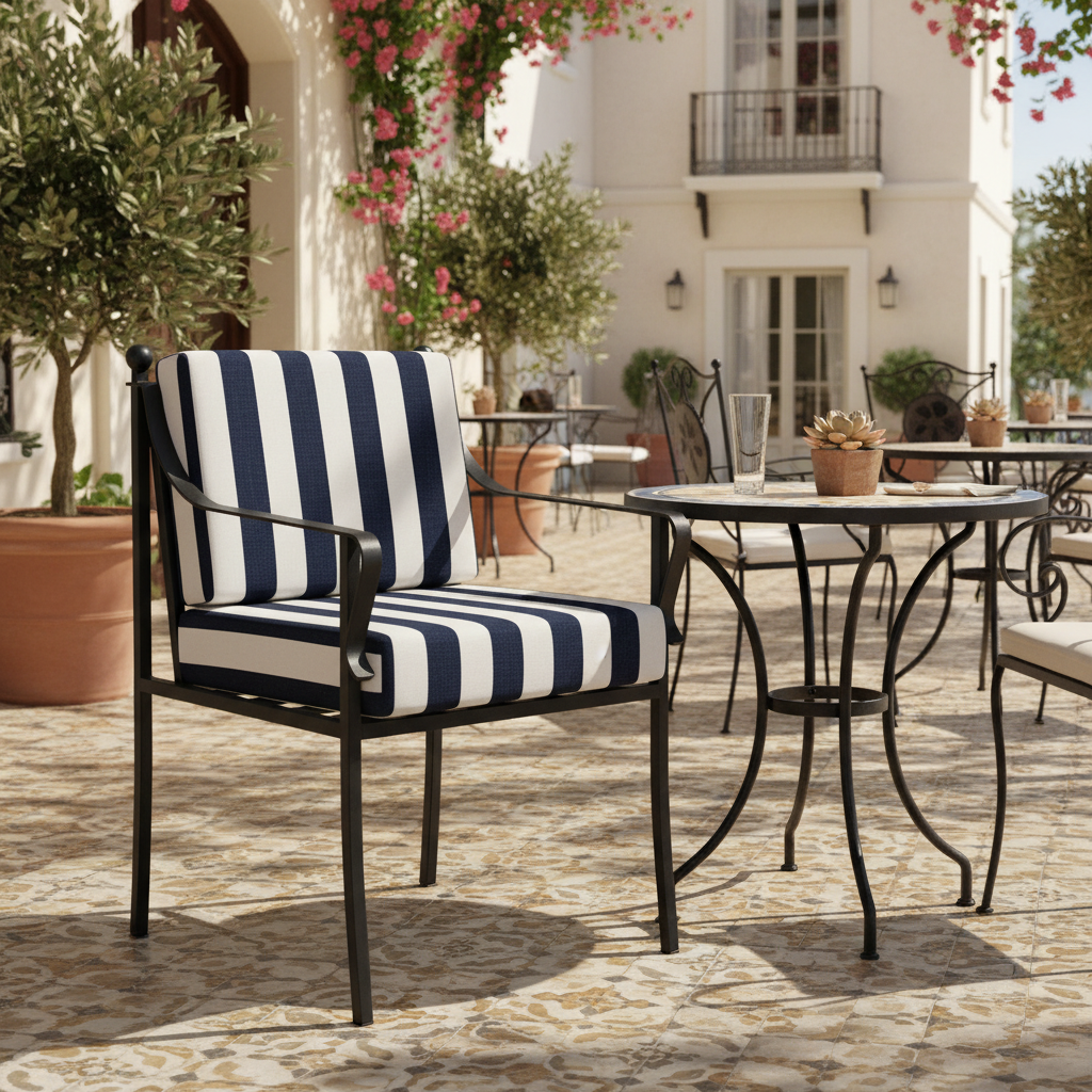 Klasik Ferforje Tarzı Bahçe Sandalyesi - Çizgili Konfor Minderli