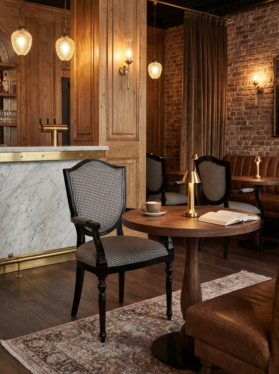 Mimarlar, İşletme Sahipleri ve Satınalma Müdürleri için tasarlanmış Regent Elite Sandalye, mekanınızın premium algısını ve müşteri memnuniyetini yükseltmek üzere geliştirilmiştir. Klasik ve sofistike kazayağı (houndstooth) desenli döşemesi ve tornalı ön ayak detaylarına sahip koyu ahşap çerçevesi, resmi ve şık bir atmosfer yaratır. Bu model, yoğun trafikli otel, kafe ve restoran ortamlarının gerektirdiği B2B dayanıklılık standartlarını karşılar. Güçlendirilmiş yapısı, sık kullanıma bağlı yıpranmayı minimize ederken, leke tutmaz ve kolay temizlenebilir kumaş yüzeyi sayesinde operasyonel bakım maliyetlerinizi düşürür. Regent Elite, kısa sürede amorti edilen ve kârlılığınızı destekleyen garantili bir uzun ömürlülük yatırımıdır. Mekanınızda misafirlere üst düzey konfor sunarak ortalama kalış süresini artırın ve yatırım getirinizi maksimize edin.