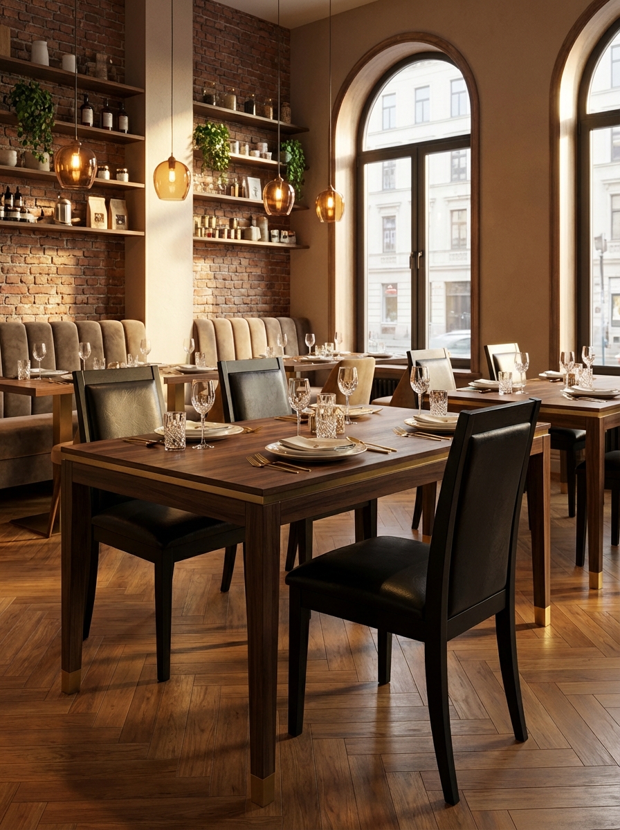 Premium algı ve operasyonel verimlilik hedeflenen HORECA projeleri için özel olarak tasarlanmıştır. Gastronomi Siyah Elegans Serisi, yoğun müşteri trafiğinin getirdiği zorluklara karşı üstün direnç sunar. Sağlamlaştırılmış koyu renkli ahşap iskeleti, uzun ömürlülüğü garanti ederek sık sık mobilya yenileme maliyetlerinizi ortadan kaldırır. Yüksek kaliteli siyah suni deri (veya deri) döşemesi sayesinde sadece lüks bir görünüm sağlamakla kalmaz, aynı zamanda dökülmelere karşı maksimum koruma ve kolay silinebilirlik sunar – bu da temizlik süresini ve işçilik maliyetini minimize eder. Ergonomik kavisli sırt yapısı, misafir konforunu en üst seviyeye taşıyarak müşteri deneyiminize pozitif katkıda bulunur. Mimarlar ve satınalma müdürleri için tasarlanan bu seri, düşük Toplam Sahip Olma Maliyeti (TCO) ile işletmeniz için kârlı bir yatırımdır.