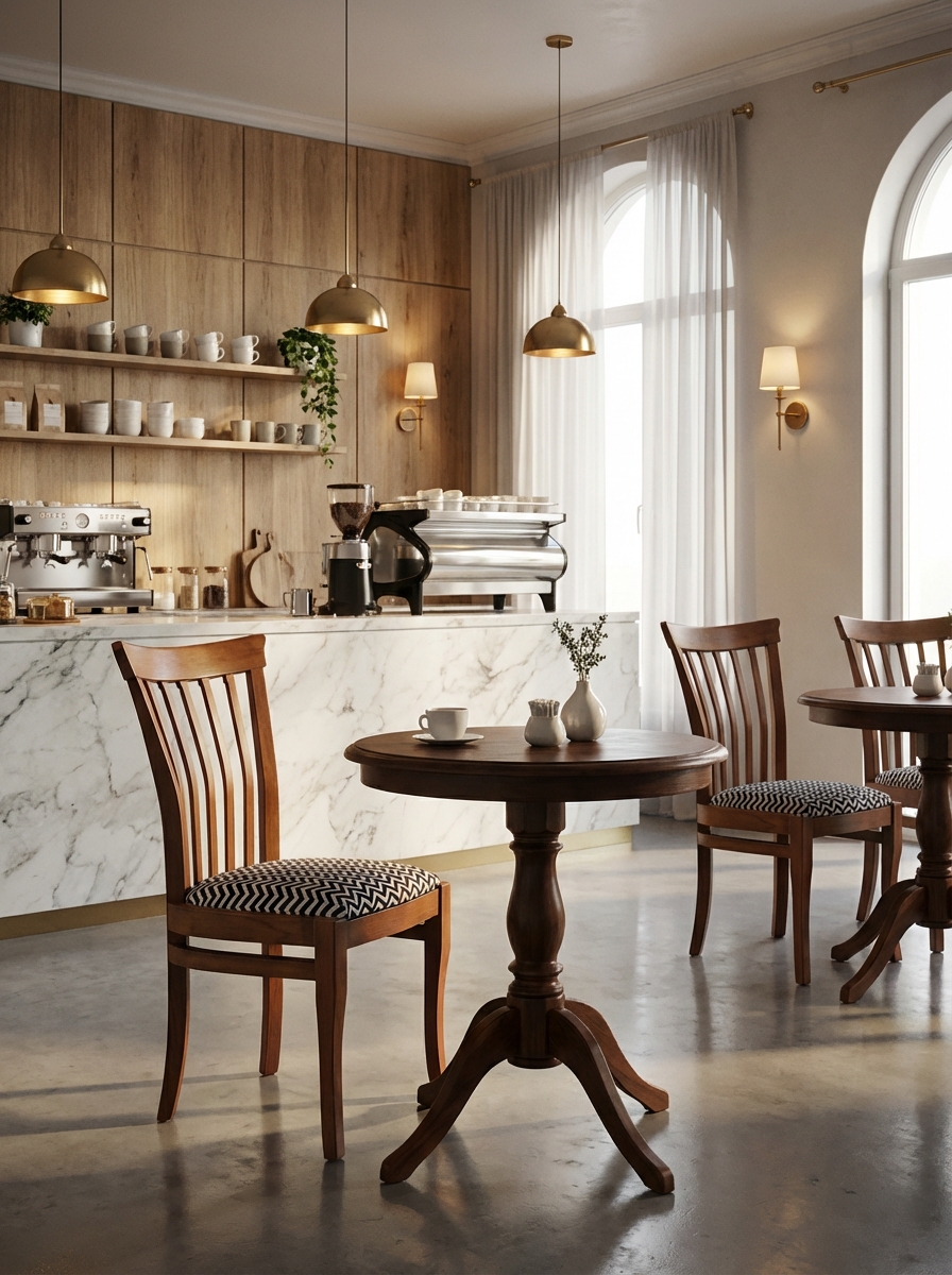 Mimarlar ve işletme sahipleri için özel olarak tasarlanmış Veritas Bistro Serisi, yoğun ticari kullanıma %100 dayanıklılık sunar. Bu sandalye, sadece estetik bir unsur değil, aynı zamanda operasyonel verimliliğinizi artıran stratejik bir yatırımdır. Sağlam ceviz tonlarında ahşap iskeleti, darbelere ve sürekli kullanıma karşı üstün mukavemet gösterir; böylece mobilya amortisman sürenizi minimuma indirir. Ergonomik kavisli sırt yapısı ve dikey çıtalar, müşterilerinizin uzun süreli oturumlarında dahi maksimum konfor sağlayarak müşteri memnuniyetini ve dolayısıyla harcama süresini artırır. Dinamik siyah-beyaz zikzak (chevron) desenli minderi, kurumsal kimliğinize modern ve cesur bir premium algı katar. Özel kaplamalı oturma alanı, zorlu lekelere karşı kolayca temizlenebilir yapısıyla hijyen standartlarınızı korumanıza yardımcı olur. Kaliteyi ve uzun ömürlülüğü birleştiren bu model ile mekanınızın değerini kalıcı olarak artırın.