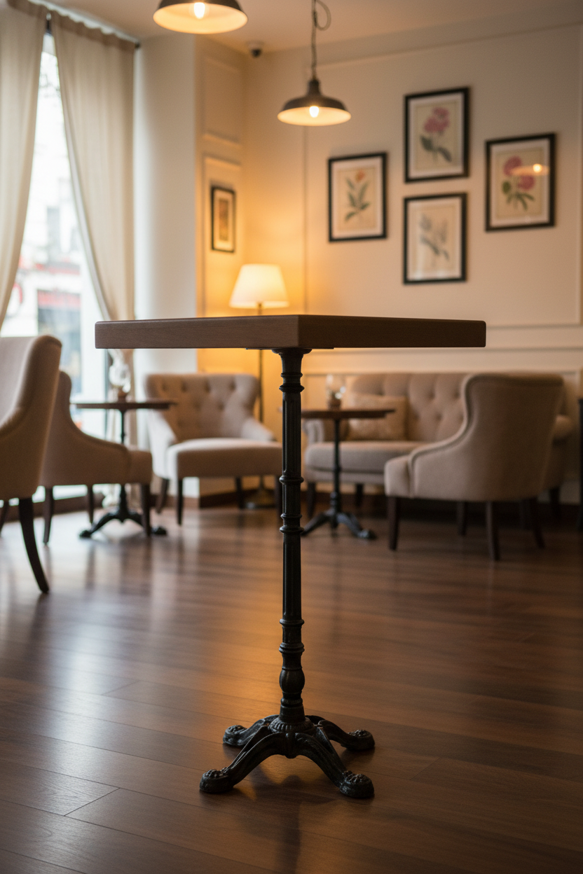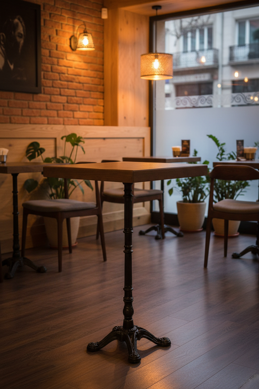 Verona Cast Iron serisi, Otel, Kafe ve Restoran (HORECA) sektöründeki işletme sahipleri, mimarlar ve satınalma profesyonelleri için operasyonel mükemmeliyet hedeflenerek tasarlanmıştır. Bu kare bistro masa, 'premium algı' ve 'uzun ömürlülük' beklentilerini tek bir üründe birleştirir. Koyu ceviz tonlarındaki yüzeyi, yüksek trafikli ticari alanlar için özel olarak güçlendirilmiş, çizilmeye ve lekelenmeye karşı üstün dirençli bir materyalden üretilmiştir. Ağır hizmet tipi döküm demir (cast iron) ayak yapısı, sarsılmaz stabilite sağlayarak müşteri deneyimini en üst seviyeye taşır ve devrilme riskini ortadan kaldırır. Kompakt kare formu, küçük metrekarelerde maksimum müşteri kapasitesi yaratırken, kolay temizlenebilirlik özelliği ile işletme operasyonel verimliliğine doğrudan katkı sunar. Verona, sürekli yenileme maliyetlerinden kurtulmak ve yatırım getirisini (ROI) optimize etmek isteyen kurumlar için tasarlanmış, düşük bakım maliyetli stratejik bir demirbaştır.